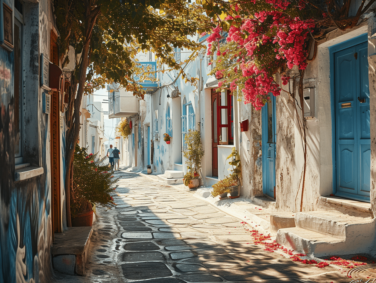 Dans le centre-ville de Mykonos, les hôtels eux-mêmes deviennent des écrins pour les œuvres d’art. Les façades blanchies à la chaux servent de fond à des explosions de couleurs et de créativité, où des fresques murales racontent des histoires mythologiques ou contemporaines. Ces manifestations artistiques dans l’espace public participent à la renommée culturelle de l’île, attirant les amateurs d’art du monde entier.